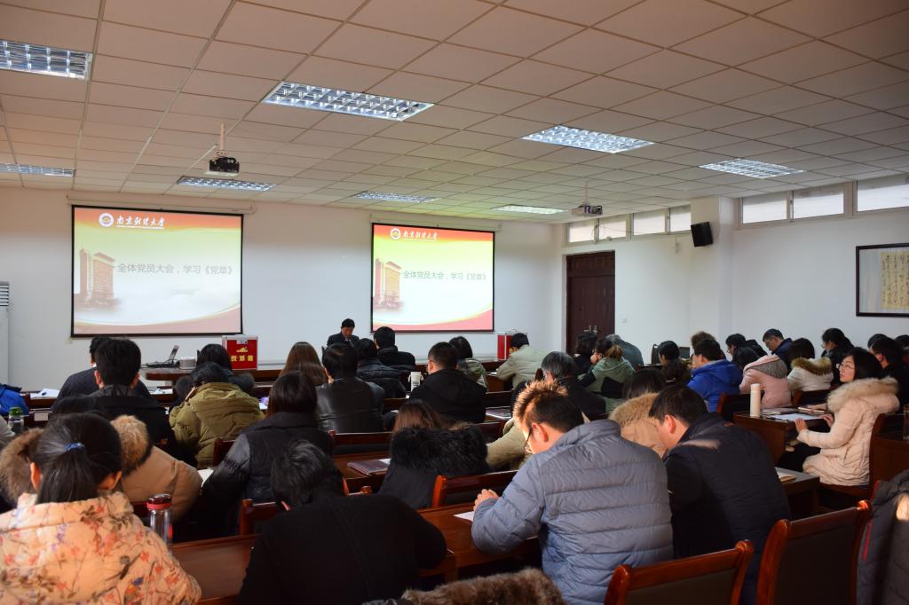 在仙林校区德济楼408会议室召开党员大会,开展以“重温新党章,感知新力量”为主题的“两学一做”学习教育。全体党员院领导、支部书记及全体师生党员60多人参加大会。大会由澳门百利宫