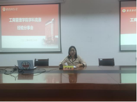 金灿和孙羽竹两位同学代表参赛获奖学生进行竞赛经验分享。金灿同学曾获“正大杯”第十三届市场调查与分析大赛江苏省三等奖,她从参赛流程、调查思路、研究报告基本结构等方面为同学们做了详细介绍;孙羽竹同学带领团队在今年的“挑战杯”红色专项赛道中获得江苏省赛一等奖,她通过PPT生动展示了自己在历次竞赛中积累的经验笔记和项目成果,鼓励同学们积极踊跃地参与竞赛,丰富自己的大学生活和人生经验。