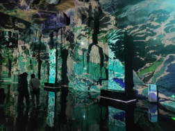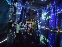 在达摩古洞内,“一苇渡”光影艺术传承东方美学视效,依托达摩传奇故事,结合千坪洞窟空间形态,创意性采用3D Mapping、AIGC、Arc GIS拓扑等光影技术,以“渡”为体验线索,打造了八大艺术“光”空间。参访过程中,同学们深切感受到了科技对于旅游场所的强效赋能和智慧旅游对于游客旅游体验的提质增效。