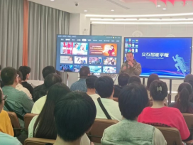 在“数字长江”元宇宙博物馆内,南京莫愁智慧信息科技有限公司董事长何明泓向同学们讲介绍了莫愁科技的背景、业务及主要成就,并向同学们展示了“数字长江”元宇宙博物馆的基本内容。何明泓董事长还向同学们展示了使用VR技术和交互式大屏访问“数字长江”元宇宙博物馆,使同学们对于智慧旅游与元宇宙赋能文旅行业有了更加深刻的感知。“数字长江”元宇宙博物馆是莫愁科技的项目之一,该项目与南京全域旅游总入口“莫愁旅游”平台相连,为游客提供一站式的文旅产品订购服务。游客不仅可以通过虚拟平台参观长江文化,还可以通过平台预订相关的文旅产品和文化活动等。