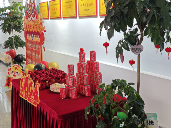 班级树也挂上了小红灯笼,灯火辉煌,盏盏红灯融化了寒冷风霜,承载着春天的祝福与希望。
