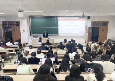 活动伊始,由校保卫处副处长、人民武装部副部长潘雪峰为同学们介绍南京市征兵工作的相关情况与政策。潘处长向同学们详细讲解了兵役登记、应征报名的时间、入伍基本条件以及应征入伍程序。随后,潘处长从大学生参军入伍优待、从军发展路径、经济补助、定向招录这四个方面让同学们更加深入地了解到国家对于大学生参军的政策支持。
