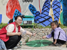 志愿者们在工作人员的带领下分好组到达各自负责地点,为井盖事先刷上底漆。活动在上午9点准时开始,迎着阳光,家长和孩子们跟随志愿者有序领取绘画工具和材料,一起在对应的井盖上开始创作。活动过程中,志愿者亲切耐心地引导孩子们打底、勾线、上色,尽情释放童真与创意。家长们也加入其中,和孩子们一同体验这份久违的童趣,收获劳动的喜悦,用画笔将脚下井盖描绘成龙尚路的靓丽风景。