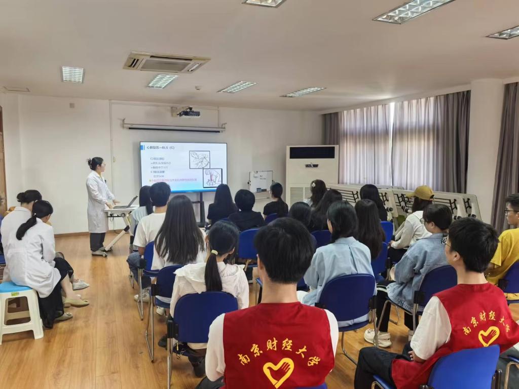 活动伊始,医护人员首先介绍了心脏骤停的定义和原因,以及心脏骤停的病情判断与临床表现,强调了“黄金4分钟”的重要性,让同学们更加清楚地了解到了有关心脏骤停的专业知识。随后,医护人员为同学们详细讲解心肺复苏的具体操作方法和注意事项,并邀请现场同学实地体验心肺复苏。
