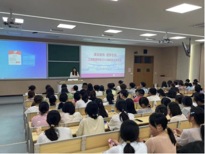 的布局和多彩的校园生活。接着,冯老师详细介绍了大学四年的生涯规划和各专业培养方案,并对大一学年的学业提出了相关要求。随后,冯老师从请销假制度、公寓管理规定、课堂教学秩序、自我管理与人际交往等方面阐释了大学期间的行为规范,要求同学们遵守校规校纪,诚实守信。冯老师还着重展开安全教育,强调了人身安全、财产安全、交通安全的重要性,教导同学们要提高安全防范意识,谨防网络诈骗,树立正确的价值观,时刻关注自己的心理健康。最后,冯老师就新生军训工作进行安排与部署,并对同学们提出了殷切的期望。