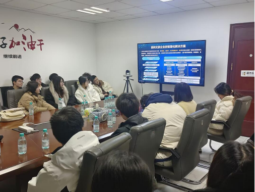 2024年12月18日,旅游2201班全体学生在廉同辉教授的带领下走进南京汉图信息技术有限公司开展《智慧旅游和旅游电子商务》课程实践活动。在企业参观过程中,汉图公司的负责人详细介绍了公司的发展历程、业务板块以及智慧文旅产品的应用案例。学生们了解到,汉图公司凭借敏锐的行业洞察能力、优秀的业务拓展能力和强大的项目实施能力,参与多项国家、省级标准规范的制定,并自主研发了一系列智慧文旅服务产品,服务范围涵盖省、市、区县多层级的文旅主管部门及众多文旅企业。