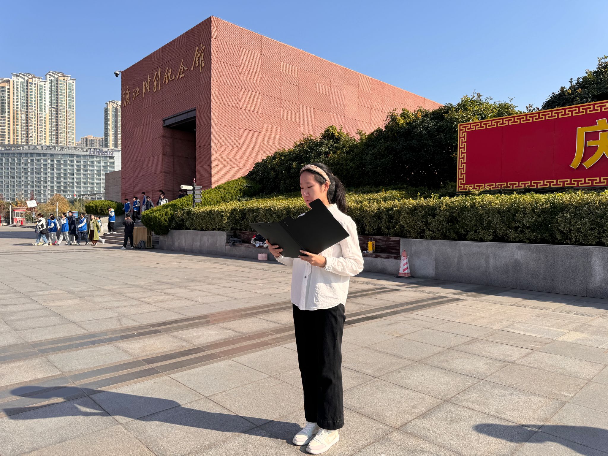 在庄严的国歌声中,新团员入团仪式拉开序幕。在纪念馆的红旗下,新团员们佩戴团徽,庄严宣誓。青春的誓言在广场上空回荡,映照着他们对共青团组织的忠诚和为共产主义事业奋斗的坚定决心。工商2201班蔡妮辰同学代表新团员发言,他感到非常荣幸,承诺将以更高的标准要求自己,“不断奋斗,争做榜样,积极投身于共产主义事业,用我们的青春谱写绚丽的篇章,让共青团员成为我们最骄傲无悔的身份。”澳门百利宫