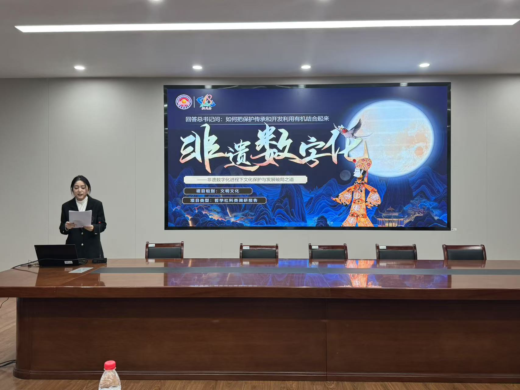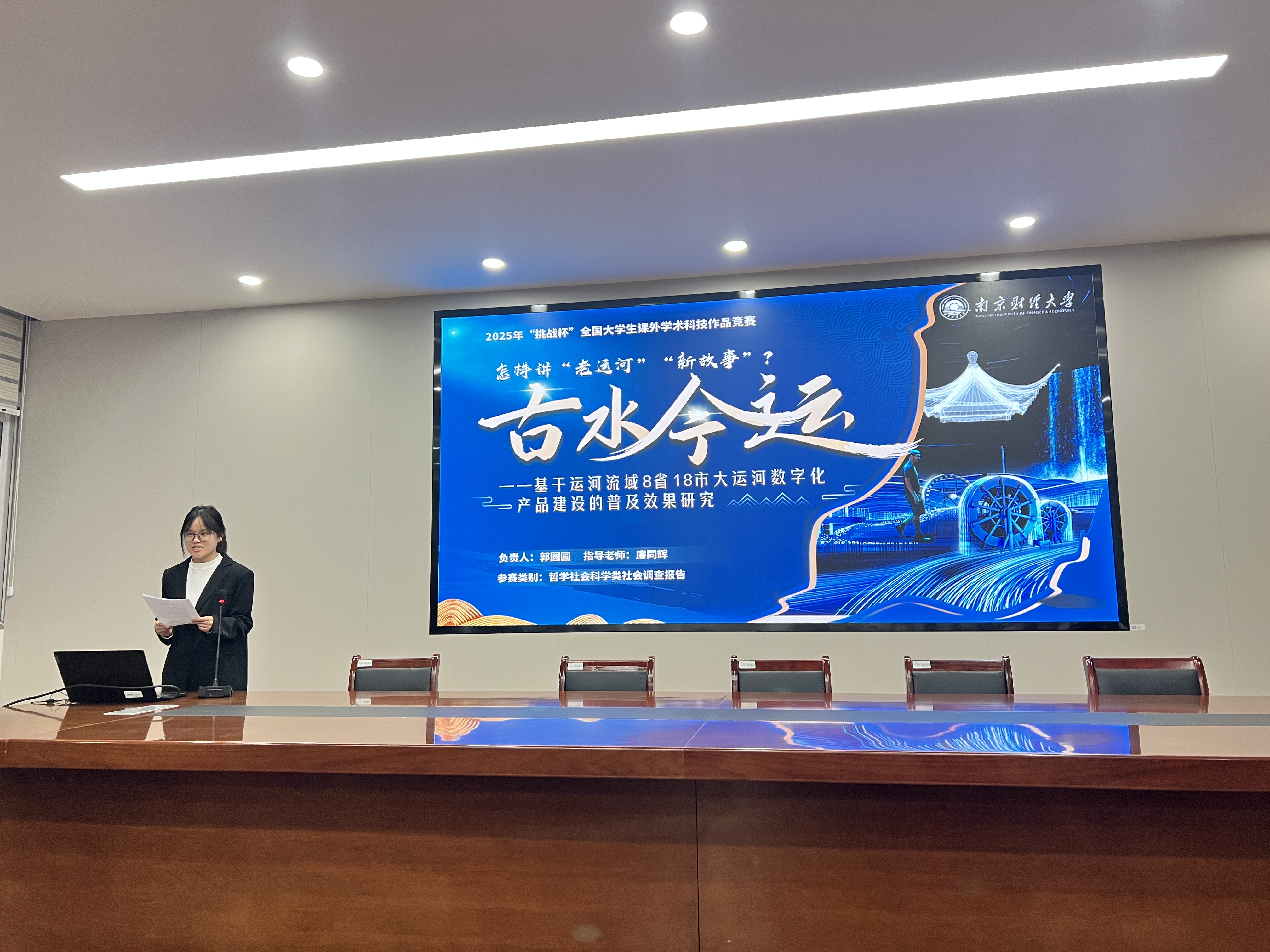 在项目指导环节,三个入围校赛的参赛团队分别围绕技术创业驱动、非遗数字化传承、大运河文化传播等前沿领域进行汇报。庄建军教授针对各组共性问题提出系统性优化建议:在选题设计上强调核心概念的精准界定与研究边界的合理聚焦;在学术规范方面要求强化数据支撑、注重研究方法的科学性与创新性;在实践价值维度建议凸显时代背景与现实意义,同时针对成果呈现提出PPT逻辑架构、数据权威来源、可视化表达等具体改进意见。