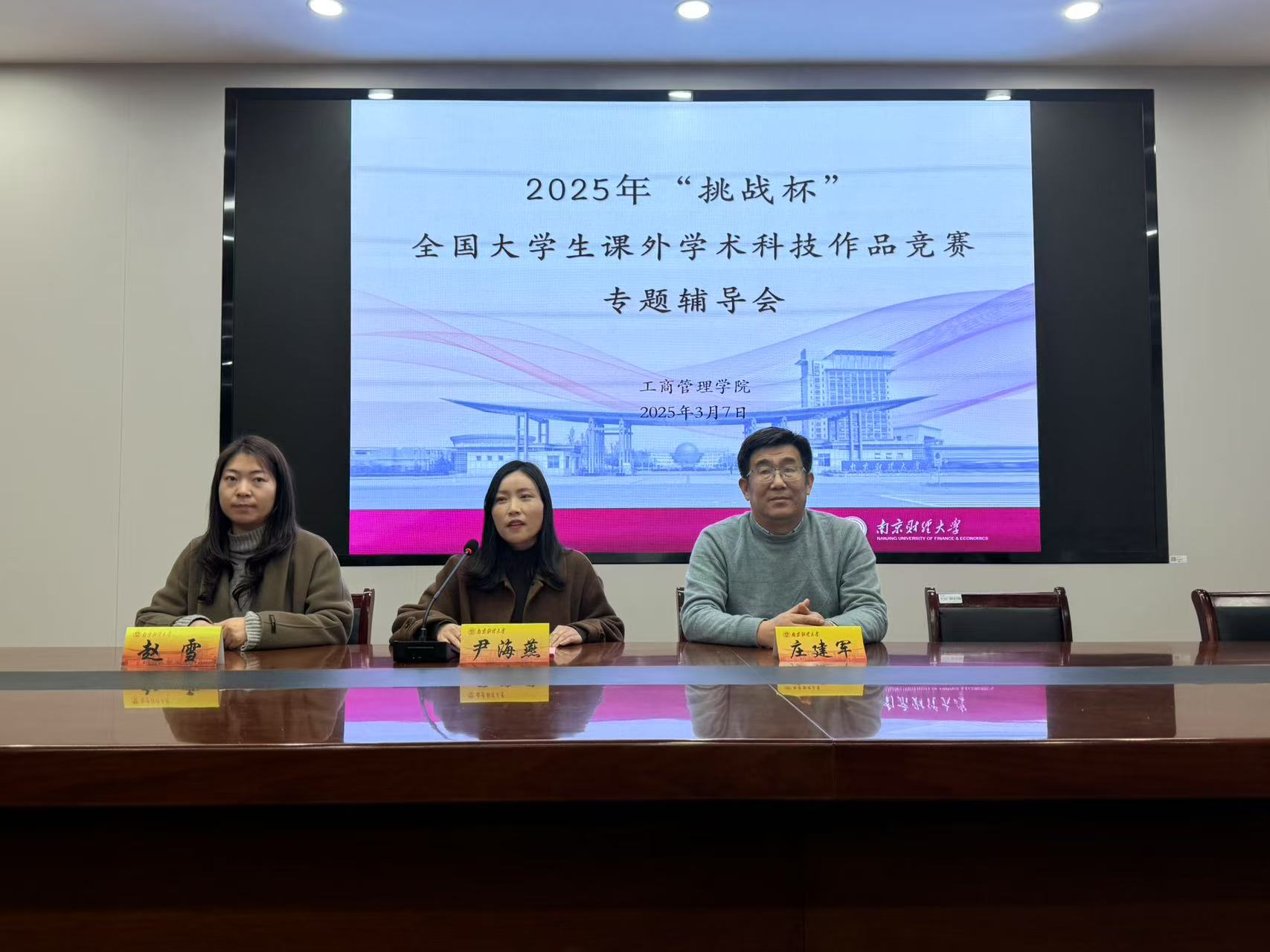 在历届“挑战杯”赛事中取得的成果,特别介绍了庄建军教授在指导“互联网+”、“挑战杯”等高水平赛事中丰富的比赛经验。她强调,本次辅导会旨在通过专家深度指导打磨优质项目,为即将到来的校赛做好充分准备。