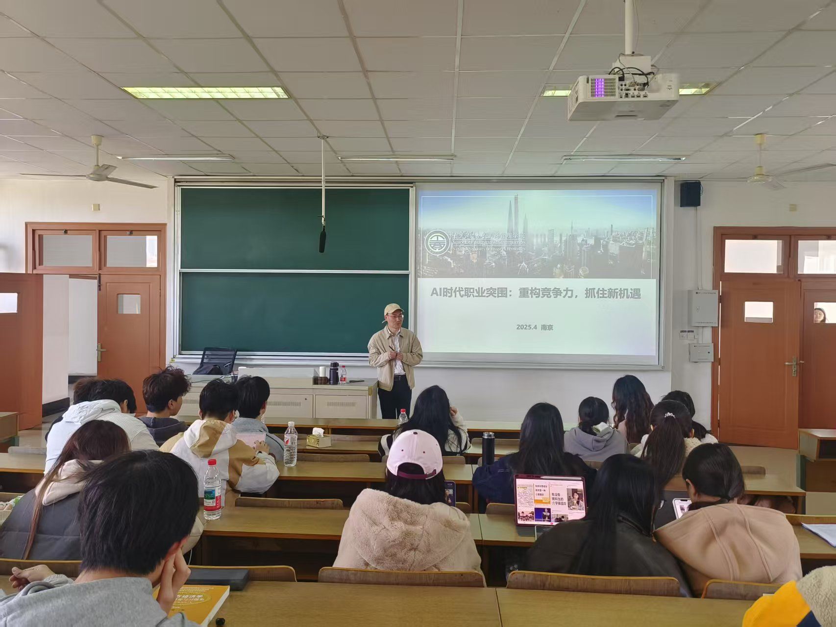 讲座中,罗斌基于技术变革周期下的职业发展规律,系统阐述了把握AI时代机遇的核心路径。他提出在技术革命引发的产业结构调整中,同学们需敏锐捕捉AI应用窗口期的职业红利,通过掌握AI工具、积累数据资产构建个人竞争优势。在核心竞争力塑造方面,建议大家重点培育创意方案整合、深度需求洞察及组织协调等AI难以替代的能力。同时结合自由职业兴起、项目制工作常态化的新趋势,针对具体求职场景给出实操指引,包括运用AI优化简历设计、在面试中展现真实成长经历、强化团队协作与结构性学习能力等具体策略。活动最后,罗斌鼓励同学们提前规划职业生涯,在校期间重点培养独特的竞争力,如掌握数据分析、项目管理等关键技能,以便在就业市场中脱颖而出。