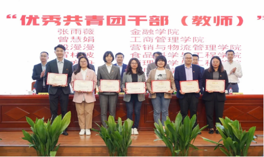 团委书记曾慧娟老师(前排右二)领取“优秀共青团干部”奖状