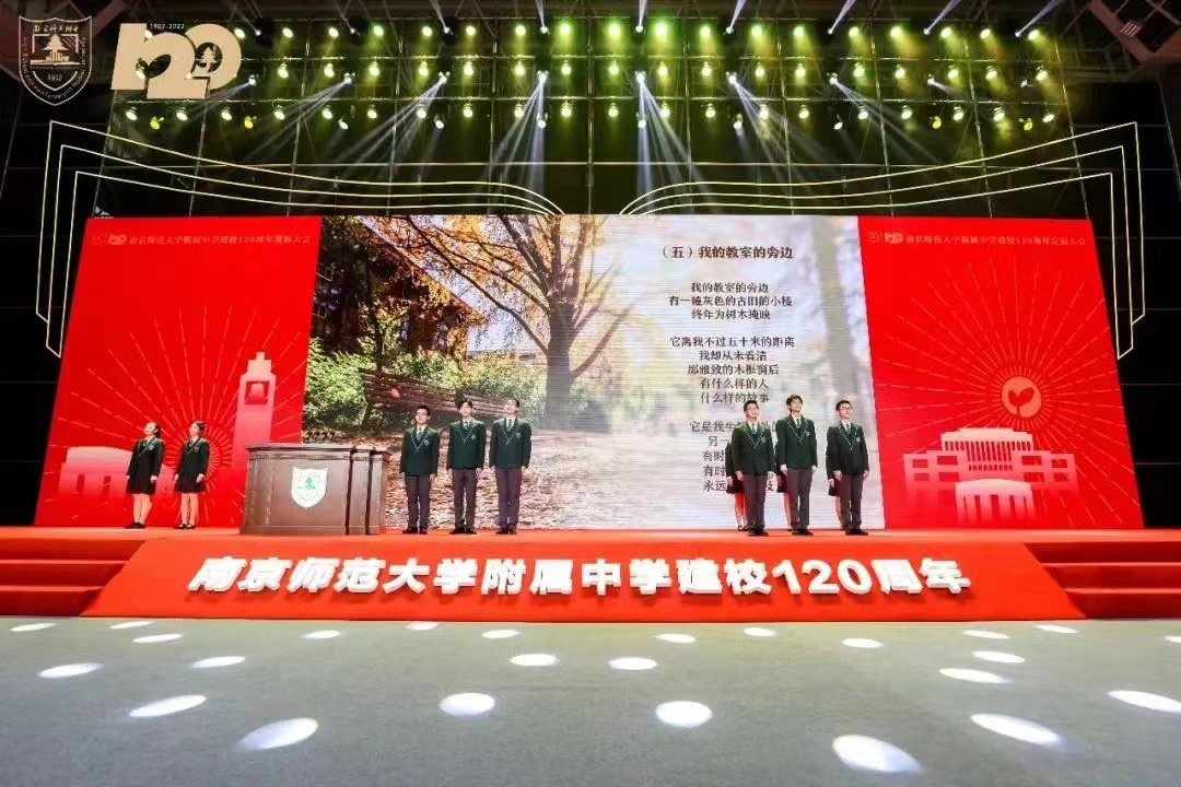 应邀参加南京师范大学附中建校120周年发展大会。副校级领导朱琴华应邀参会,校招生办主任孙菲、南京片区招生宣传副组长全真真、改发办综合管理科科长刘涛一同参会。