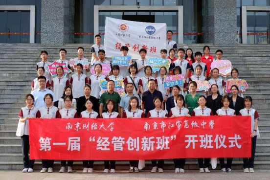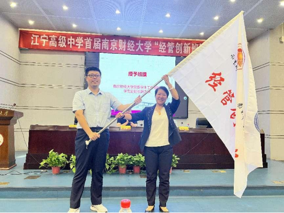 党委书记张杰、副书记尹海燕以及江宁高级中学首届“经管创新班”的38名学生参加仪式。