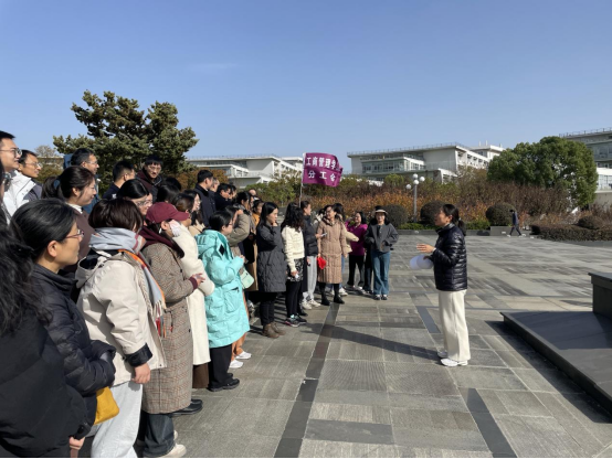 党委书记张杰做动员讲话。她表示,健康的体魄是事业发展的基石,也是幸福生活的保障。希望全体教职工动起来、跑起来,努力提高身体素质,以更充沛的状态投入到工作和生活中去。随后,分工会主席冯玲介绍了本次迷你马拉松活动的路线与规则。此次迷你马拉松从图书馆前广场出发,经过南门到达德济楼前打卡,继续前往图书馆后门,抵达天鹅湖畔打卡结束。路线途径校园的主要景点和标志性建筑,让老师们在锻炼身体的同时,也能感受校园初冬的美丽风光。