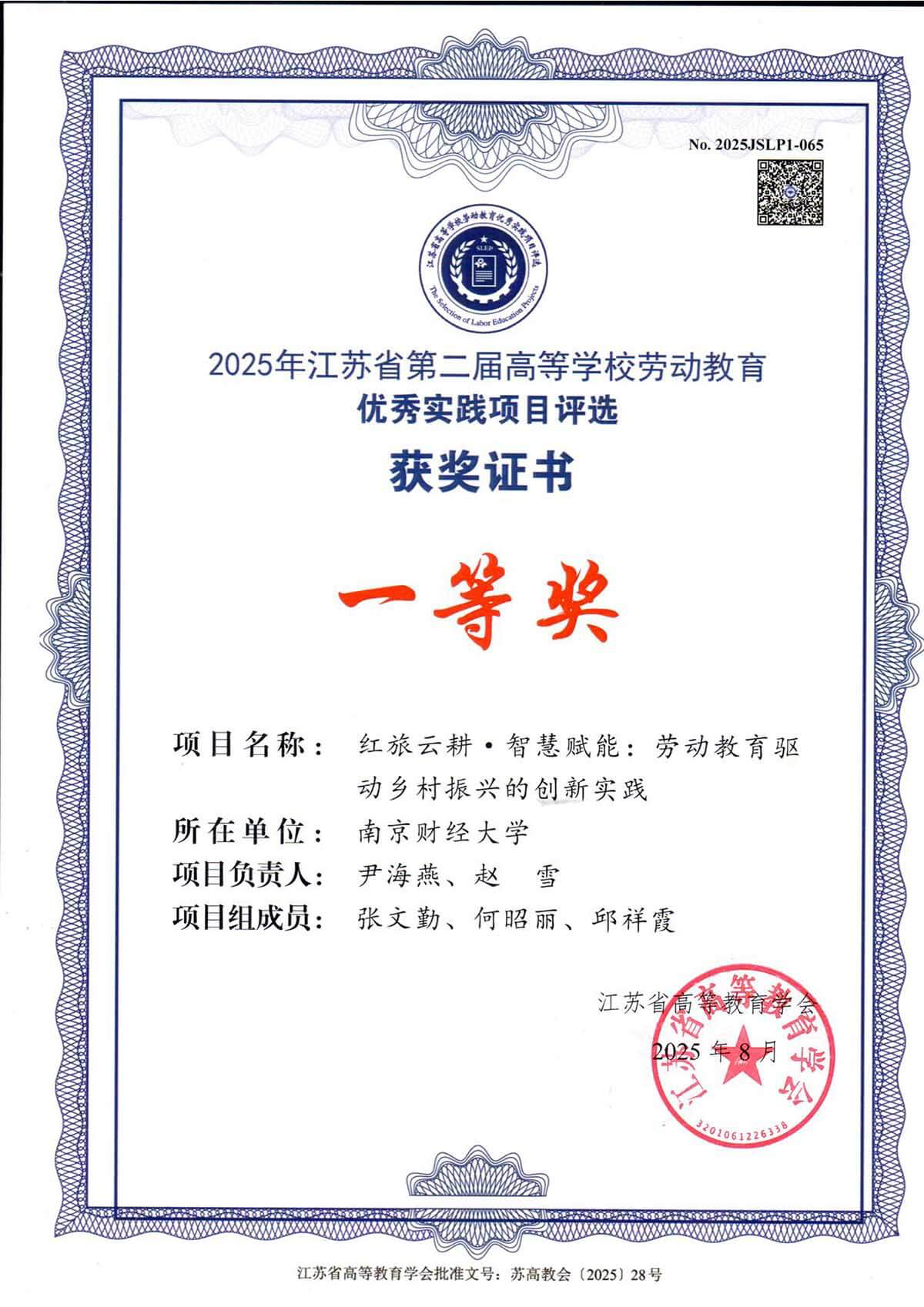 党委副书记尹海燕和分团委书记赵雪提交的作品《红旅云耕·智慧赋能:劳动教育驱动乡村振兴的创新实践》获评一等奖。