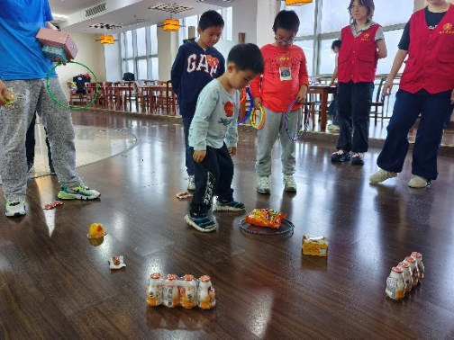 精心策划了丰富多样、安全有趣的互动游戏,紧张刺激的“击箭”与“飞镖”项目中,孩子们在专业指导下,化身“小小神射手”,为争夺高分荣誉认真比拼;考验默契的“双人推球”环节,家长与孩子背靠背或面对面协作运送瑜伽球,齐心协力冲向终点;趣味十足的“零食套圈”区,孩子们瞄准心仪的零食抛出套圈,收获满满惊喜。最富节日特色的“端午鸭蛋绘画”活动,则让孩子们充分发挥想象,用水彩笔和颜料在鸭蛋上描绘出五彩斑斓的端午图景或个性创意,活动还为游戏优胜者及参与者准备了精美礼品,现场气氛温馨热烈。