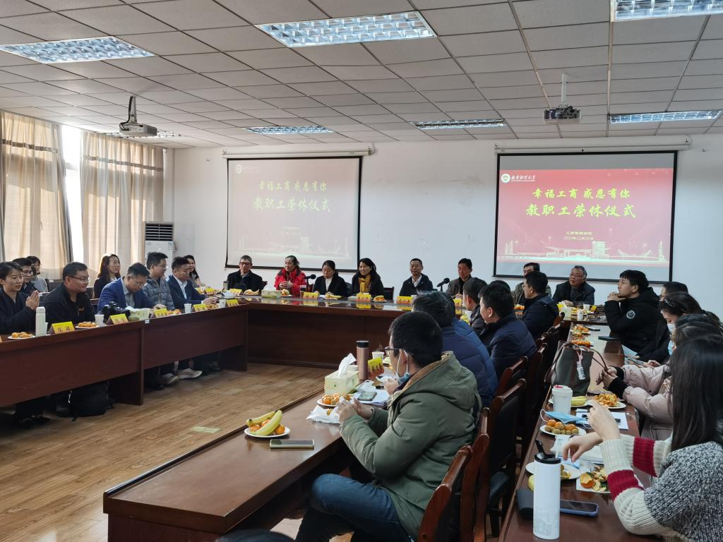 12月20日下午,澳门百利宫 在德济楼408会议室举行“幸福工商 感恩有你”教职工荣休仪式。离退休处处长唐习华、澳门百利宫 全体院领导出席仪式。澳门百利宫 2022、2023年度光荣退休教师以及全体教职工、校友会代表共同参加。仪式由院党委书记张杰主持。