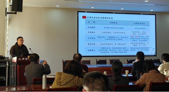 在专题辅导环节,社省委调研处干部刘泽鸿作了“社情民意信息撰写” 专题辅导。刘主任介绍了社情民意信息的报送流程,就社情民意信息的类型、选题、摘要、分析、对策等方面进行了详细讲解,并结合大量实际案例,深入浅出地阐述了如何撰写一份有深度、有价值、可操作的社情民意信息。随后,校九三学社副主委王庚教授结合自己连续三届江苏省政协委员的履职经验,从教学、科研、参政议政和社会服务等方面进行了深入的分享,为与会者提供了宝贵的经验和启示。