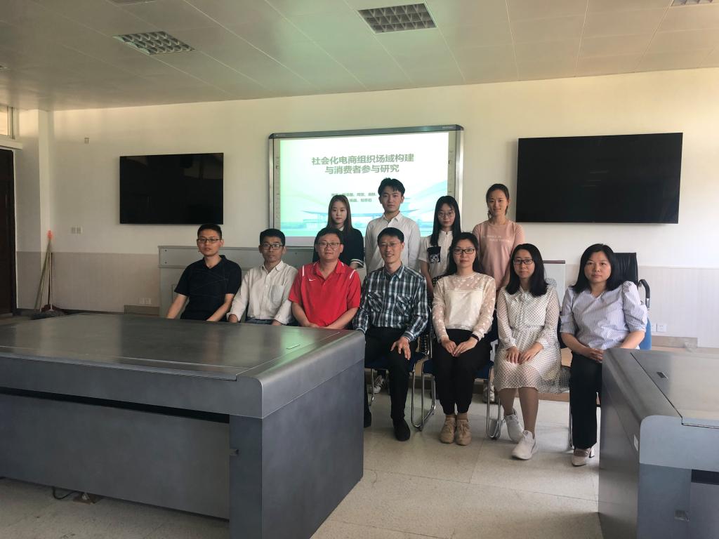 本科论文团队项目的队长杨泽国同学从选题依据、团队合作、研究思路、主要结论与创新点六个方面进行详细汇报。杨泽国、周雯、秦静与李心怡四位同学合作研究的论文方向为社会化电商组织场域构建与消费者参与研究,深入梳理1700余篇新闻材料,针对性地访谈10位社会化电商购买的典型对象,得出组织场域与社会化电商消费者购买模型,并从“认知反应”与“沉浸体验”的角度分别构建结构方程模型进行验证。