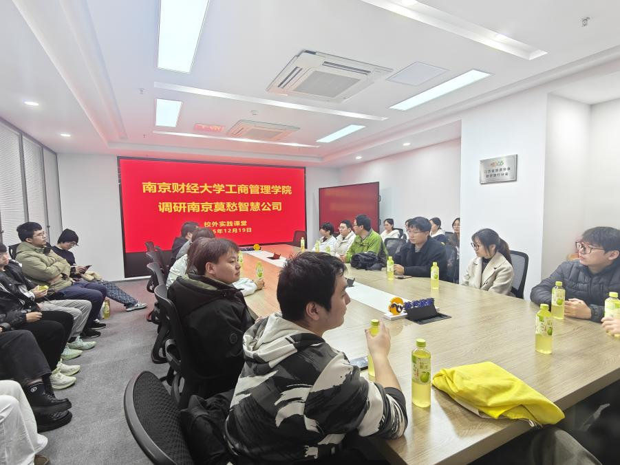 旅游管理系教师廉同辉带领旅游管理专业23级本科生和部分MTA学生走进南京文旅集团下属的南京莫愁智慧信息科技有限公司,开展企业实地调研活动。