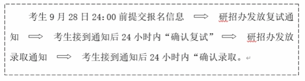 获得拟录取资格的申请人务必于9月28日(预计时间,具体时间另行通知)在教育部“全国推荐优秀应届本科毕业生免试攻读研究生信息公开暨管理服务系统”填写并提交报名信息。并按照如下程序完成录取确认,逾期未确认将视为自动放弃录取资格。
