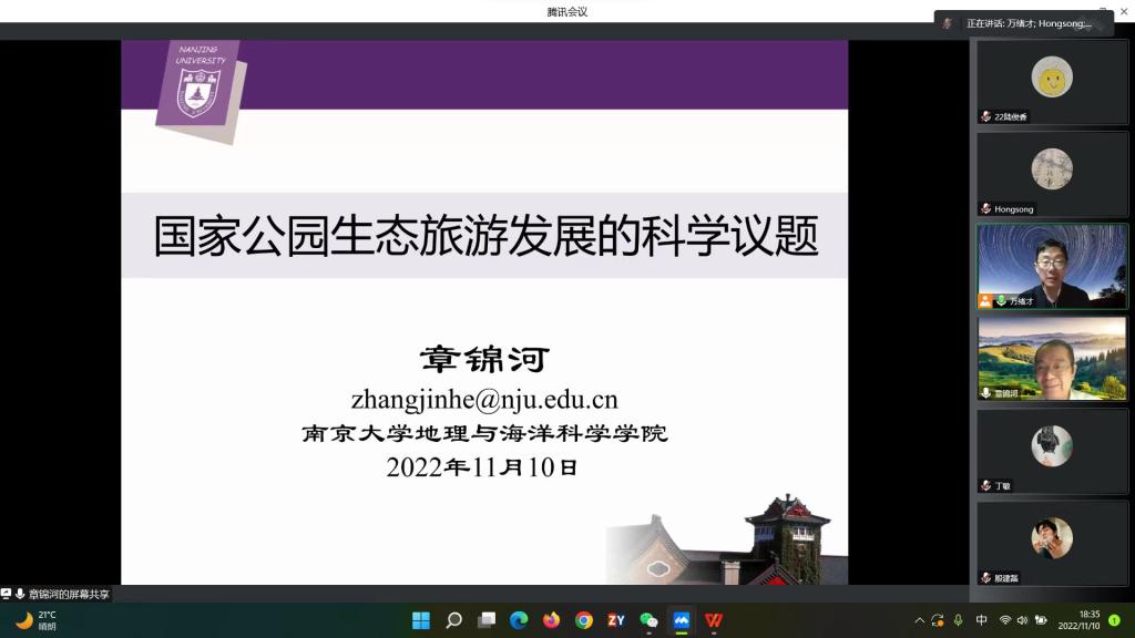 教授章锦河通过腾讯会议作了题为“国家公园生态旅游发展的科学议题”的讲座。讲座由澳门百利宫