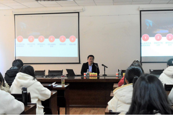 刘伯敏理事长结合自身从“包子哥”到运营“苏青合伙人”项目服务数万创业青年人的经历,向在座老师、同学介绍了创业大赛的三部曲:创业计划书、路演PPT、项目展示路演答辩,并详细介绍了参加此类比赛的注意事项。就如何发现市场、如何寻找项目,给大家提出了几点建议:要从专业出发、从兴趣出发、从市场出发、加入其他团队。同时,对于项目可行性分析和撰写计划书方面,刘伯敏理事长提出在撰写计划书时要关注产品,敢于竞争、了解市场,并强调了不管什么项目都需要多次的打磨与完善。