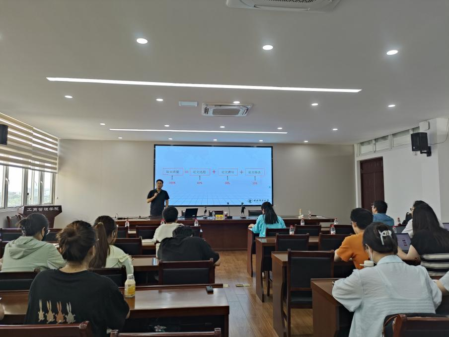 讲座围绕论文的选题、写作、修改与发表四个方面展开。王教授以拍摄电影为例,详细讲解如何通过“选择感兴趣的研究主题→识别当前主题下的研究话题→从话题中确定研究问题”三个步骤明确论文选题。在写作方面,王教授强调引言结构和理论应用的重要性。系统讲授“交代背景、回顾文献、识别Gap、提出问题和阐明贡献”的引言撰写逻辑,并阐释理论应用中常见的六大误区:没有使用理论、假装使用理论、错用使用理论、拼凑使用理论、部分使用理论以及曲解使用理论。关于修改,王教授介绍投稿过程中常见的评审意见,并结合自己最近一篇论文的修改过程讲述如何高效回应评审意见。在发表方面,王震教授在分析人力资源管理研究领域核心期刊选题偏好的基础上,分享了自身的投稿经验和实用建议。