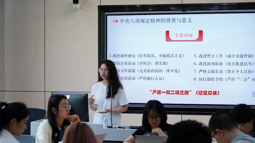 学硕与本科生联合党支部联合经济与管理研究院2024级硕士研究生党支部,在经世楼C102教室共同开展“深入贯彻中央八项规定精神学习教育”专题学习,持续推进主题教育走深走实。